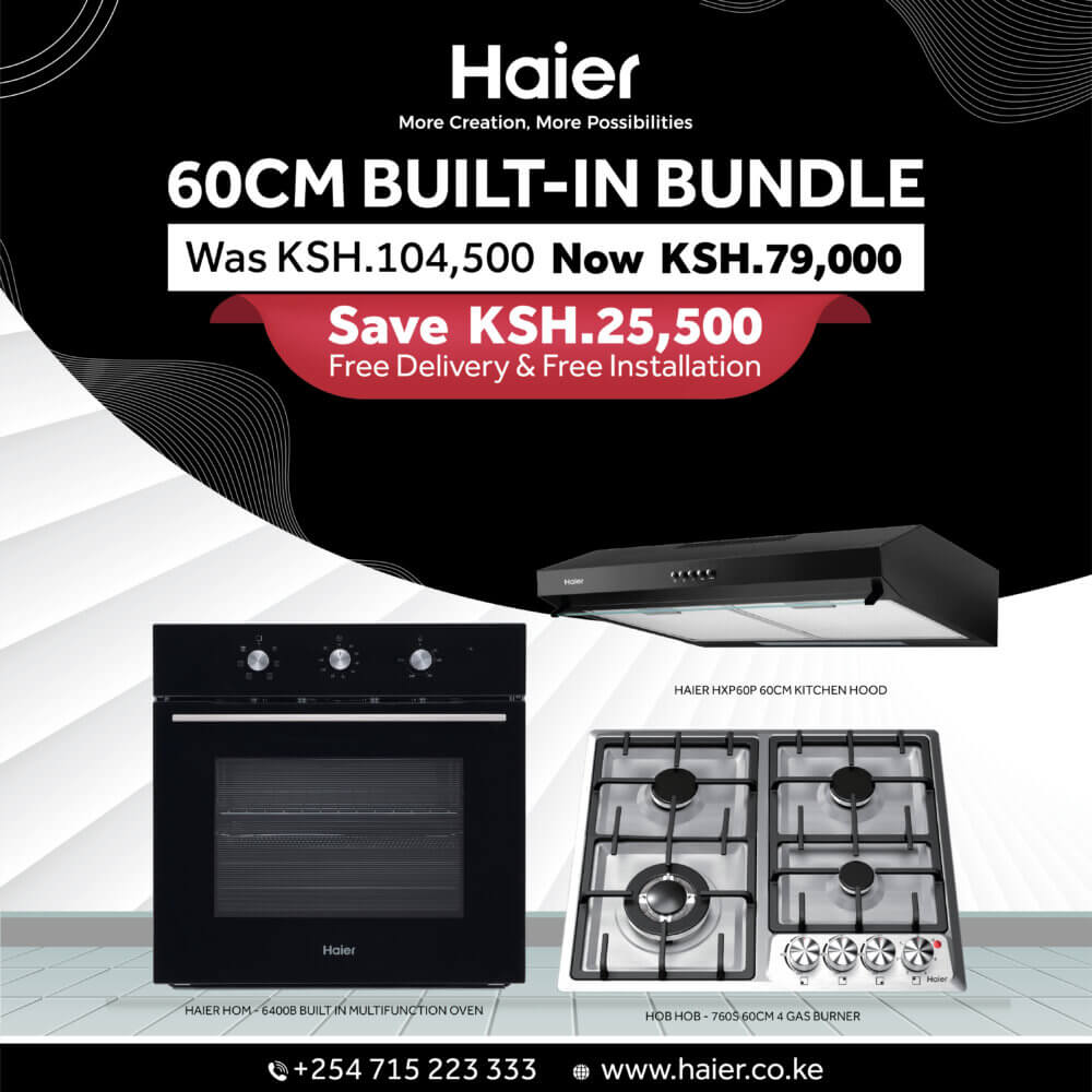 Haier 60cm Complete Built-in Bundle: 60cm Hood + 60cm 4 burner built-in Hob + 59L built-in oven
